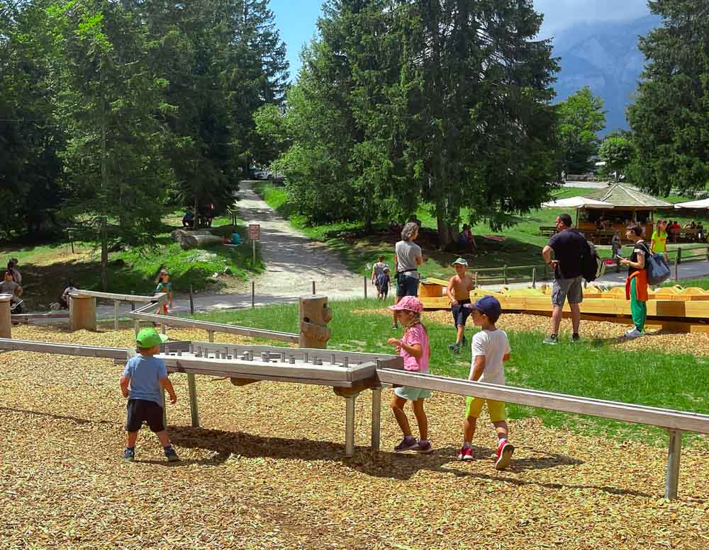 - Forest Park (Molveno–Pradel) – park przy górnej stacji kolejki La Panoramica; trasy od 4. roku życia, świetny pomysł na połączenie z wizytą nad jeziorem Molveno.